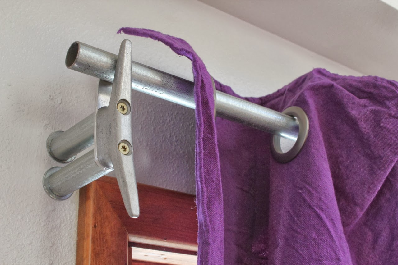 We've decided to have a subtle nautical theme in the living area so C.O. made the rod supports from boat cleats.