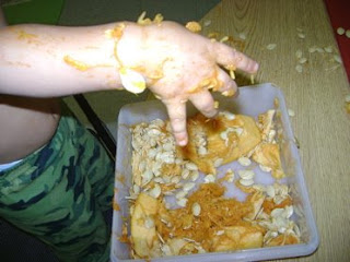 In the mean time, Harold had a blast this evening "helping" to clean the pumpkins.